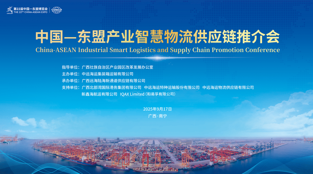 9月17日,第22届中国—东盟博览会暨中国—东盟商务与投资峰会在广西南宁开幕。当天下午,由广西壮族自治区产业园区改革发展办公室指导、中远海运集运主办的“中国—东盟产业智慧物流供应链推介会”在广西南宁举行。作为第22届中国—东盟博览会投资贸易促进活动的核心环节,会议邀请了政府机构、航运、港口、物流、贸易等重点企业、东南亚外贸企业等百余名代表齐聚一堂,共同探讨东盟产业智慧物流供应链的新机遇新发展。